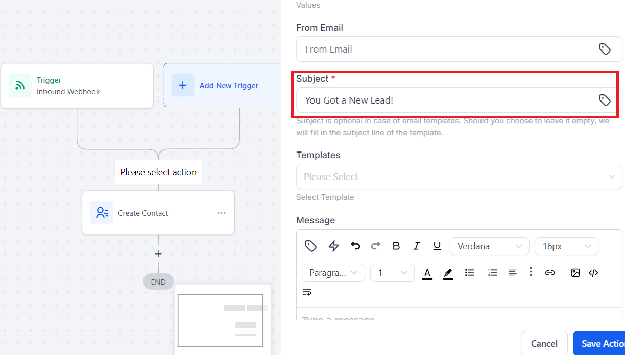 - Click “Save Action”